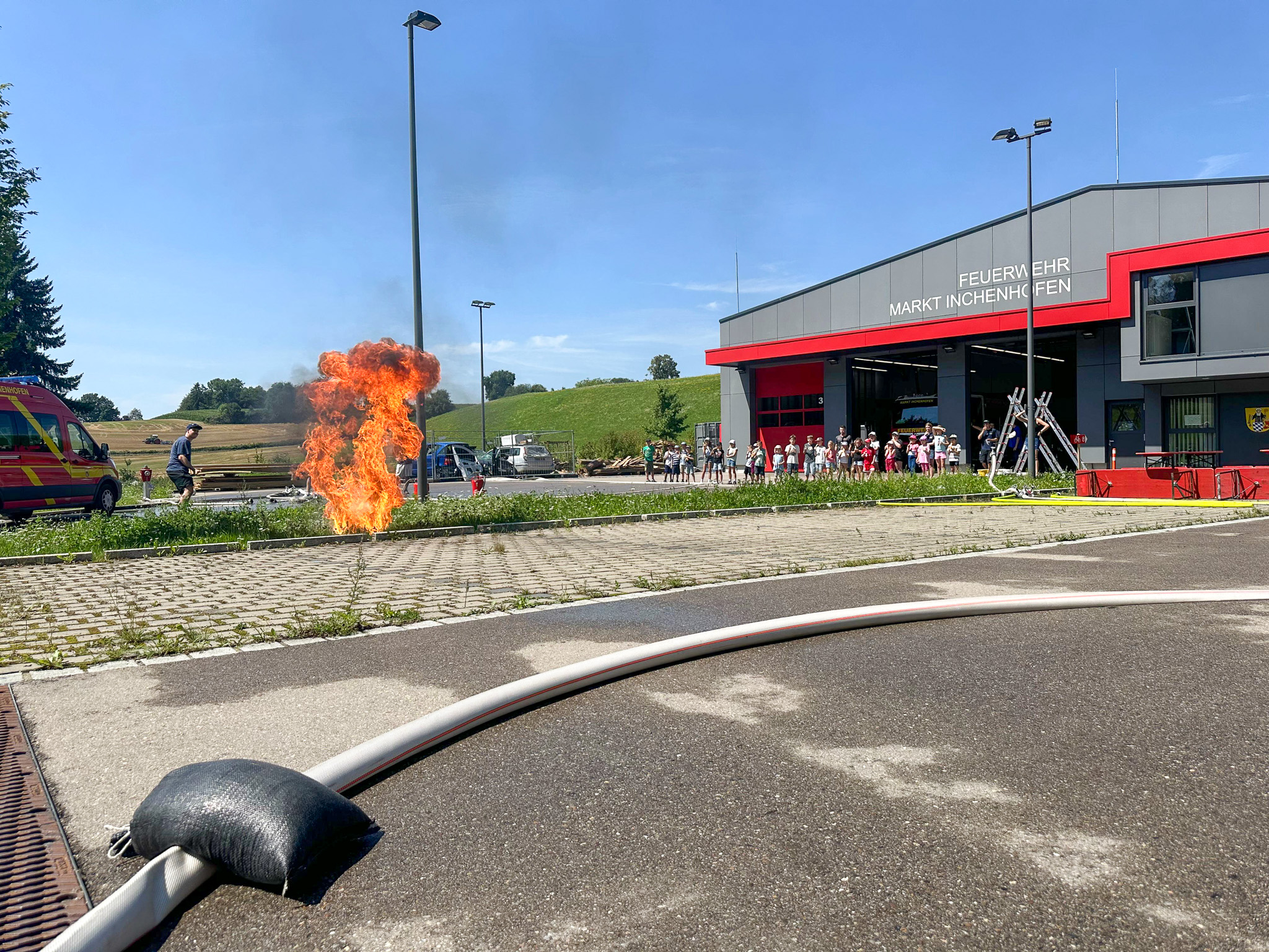 Zum Abschluss wurde noch eine Fettbrandexplosion gezeigt und anschließend wurden die Kinder mit den Feuerwehrfahrzeugen nach Hause gefahren.