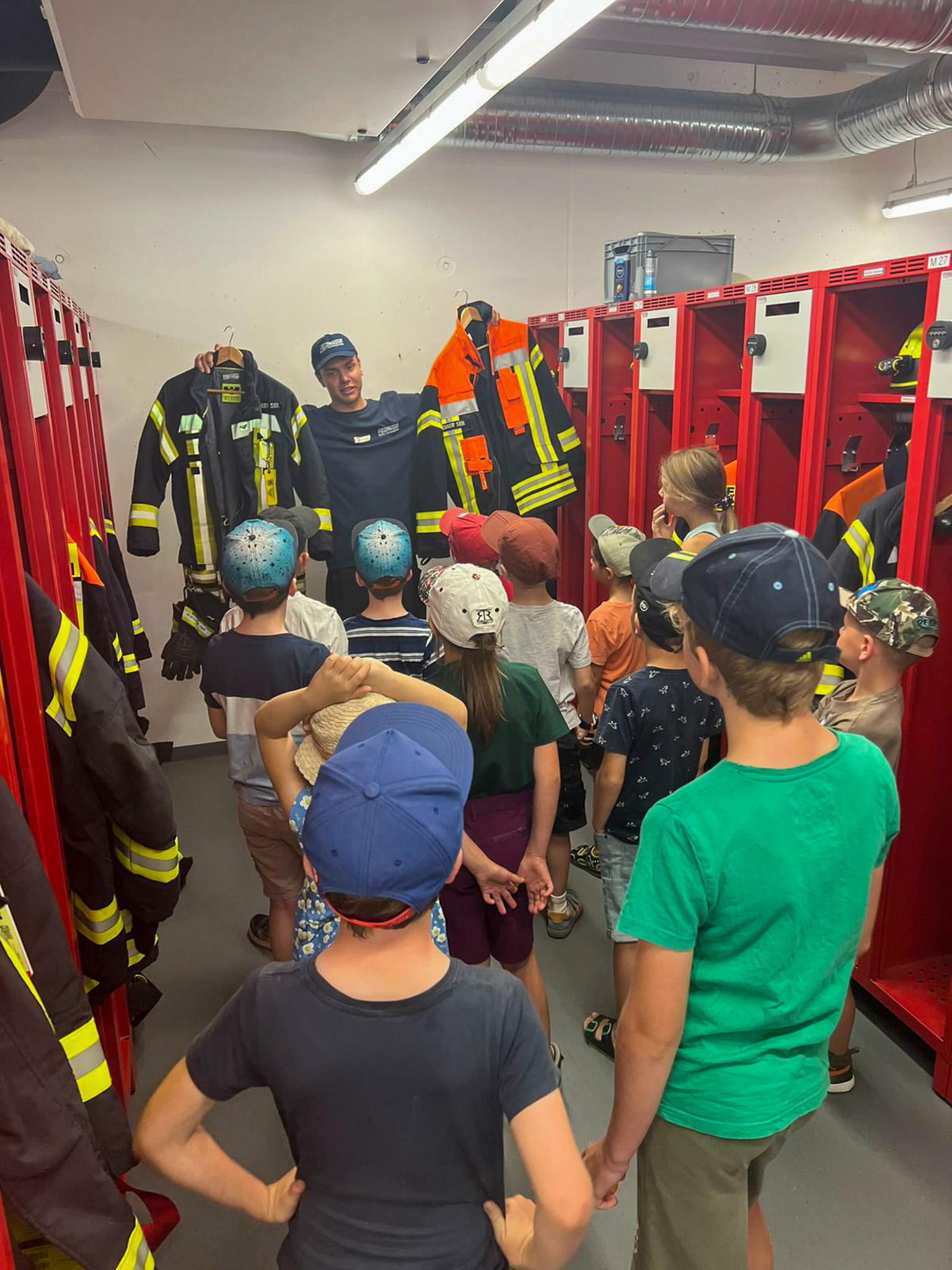 Zu Beginn durften die Kinder im Alter von 6-12 Jahren unsere Feuerwehrfahrzeuge und unser Feuerwehrhaus inspizieren.