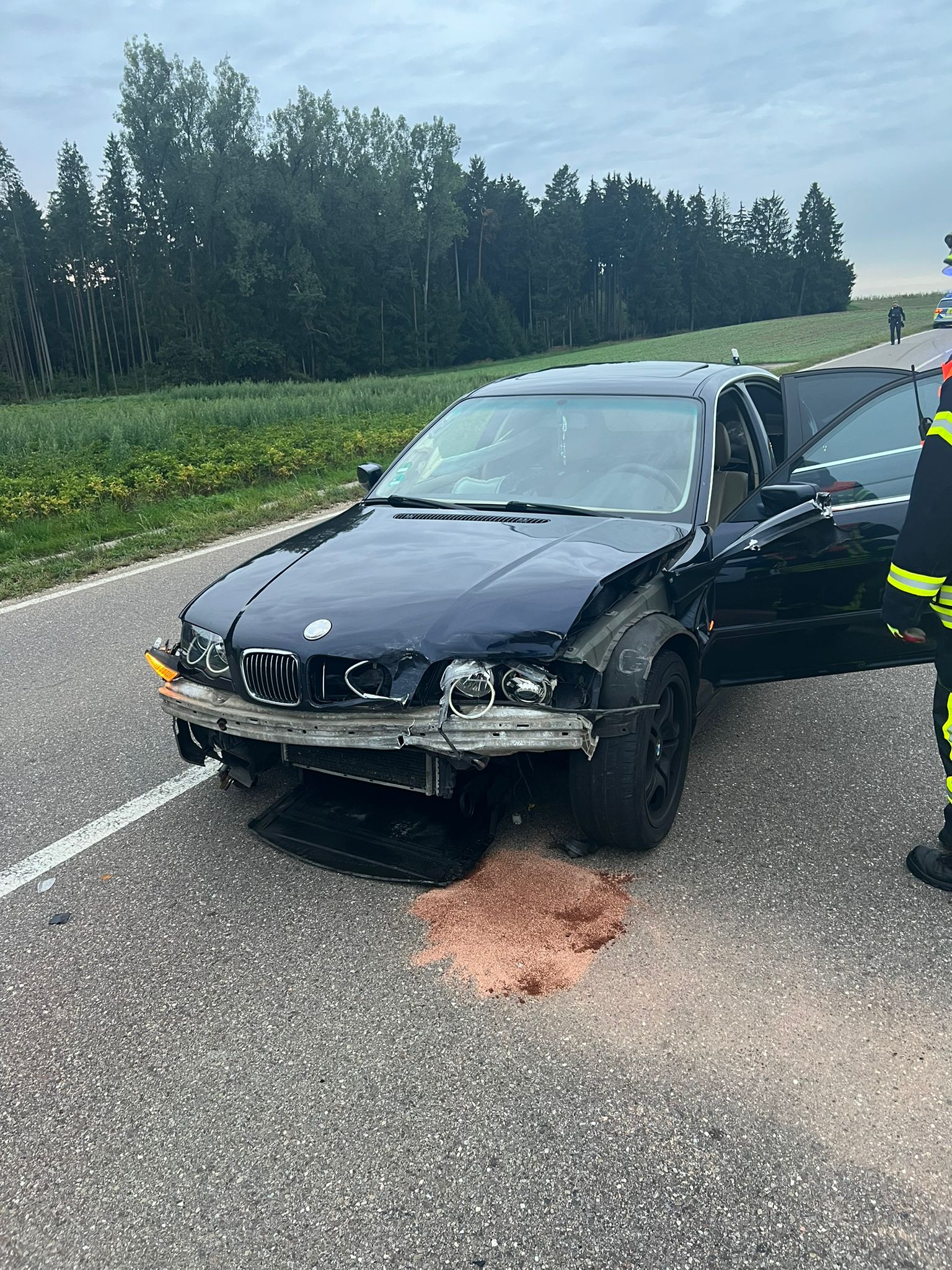Bei unserem Eintreffen wurden beiden Fahrer bereits durch den Rettungsdienst und Notarzt versorgt. Da das überschlagene Auto wieder auf den Rädern zum stehen kam, beschränkte sich unser Einsatz auf das Absichern der Unfallstelle, Bereitstellen des Brandschutzes und das Binden von ausgelaufenen Betriebsstoffen.